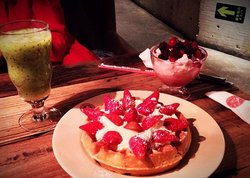 周末来看球,来早了,顺便在这里吃点东西,也是休息一会,就在工体北路工体北门。人不算少,但是不觉得糟乱,他家座椅间距挺大的。女朋友爱吃草莓松饼,这个上面都是奶油和鲜草莓,口感不是特别甜,草莓入口的感觉也挺清新的。女朋友点的冰淇淋,我是喜欢喝杯咖啡,提神。2人消费110元。查看更多