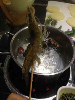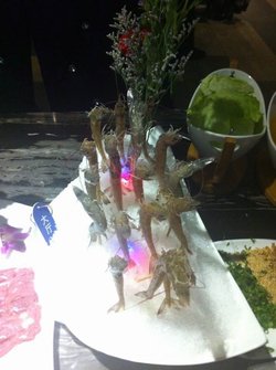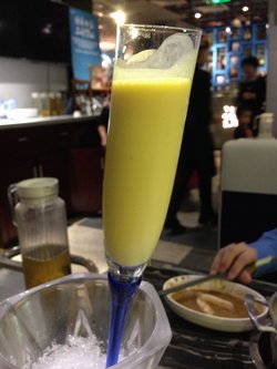 餐厅位置在王府井百货大楼北区的6层,环境自然没的说,主色调是深蓝色,切合了海鲜火锅的主题。而且就在我们临窗的6人座旁边有个超大的鱼缸,很是惹眼。服务员的服务也特别贴心,看到把手机放在桌子上后,就主动递给塑料套以防手机被弄脏。【锅底】我点的是清汤锅,不过他们家有个好听的名字叫“海誓山盟锅”。同伴要的是“鲜美鲫鱼汤锅”,汤色乳白,据说里边还有个小虾仁。【小料】是自助选料,9元一位,这点和海底捞很像。除了麻酱是由服务员端上来之外,其他的都是自选可以随意添加的。其中还有些时令水果,现在是柚子、圣女果、砂糖桔,还有两种凉菜,凉拌豆腐丝和凉拌白菜。餐前还给了一份切段的香蕉。【餐前】会免费提供一份鱼粥或银耳羹,我们一样要了一份,我喝的鱼粥,味道很浓郁,里边真的很有料。饮料提供的是一扎玉米马蹄汁儿,甜甜的。需要额外提一点的是,他们家的蔬菜、肉几乎都可以点半份,设计比较合理,花同样的钱可以多尝试些品种。肉类:【手切鲜羊肉】切工就不恭维了,肉切的块头有些偏大了,但肉质还可以,吃起来膻味儿并不浓重。【澳洲肥牛】没什么特色,味道中规中矩。【海虾】这个要着重提一下,虾都是鲜活的,端上来的时候用竹签插在冰上,他们有的还在“跳舞”,这道菜也有个好听的名字叫“会跳舞的虾”。把他们放在锅里,眼看着由灰色变成红色,大约涮一分钟就可以吃了。肉质真的很鲜嫩,仔细品真有鲜甜的味道。蔬菜及豆制品:【白萝卜】同伴及其爱吃白萝卜,而且是生吃,我只涮了两片。【土豆片】依旧是同伴点的,不是我的菜。但端上来的盘子很漂亮,特意留念了下。【油豆皮】摆盘很新颖,像秋千一样,被我无聊的摆弄了一番。【黑木耳】口感还不错,半份的分量也不小主食:【年糕】第一次在涮锅的时候吃这个,同伴点的,尝了一块,口感还不错,软软糯糯的【蕉香红薯饼】不看名字的话,我会以为是“焦香”,原来是红薯饼里边有夹心的香蕉,很有创意,二者都是甜口的,吃起来软糯香甜,但炸物还是趁热吃比较好,凉了会影响口感餐后:会免费提供四选一,杨枝甘露、老北京酸奶、芒果布丁或哈根达斯。我们选了好评率很高的杨枝甘露,另外还要了一份老酸奶,全当饭后解解腻。【杨枝甘露】光是造型就很吸引眼球了,长长的杯柄插在一个装满冰的容器中。品其口感爽滑,喝出了椰奶、芒果的香甜,西柚倒是没尝出来,西米也很多,总体感觉味道很不错,不愧好评很高。查看更多