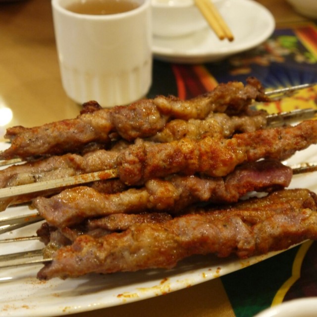 新疆菜餐厅,人气还挺旺的,还没走进店,就闻到羊肉串的香味。点了一个飘香羊肉,羊肉没有很重的膻味,羊肉切的比较薄,刚入口满口孜然的香味,嚼上几口,羊肉的香味就吃出来了。它家的烤羊排也很不错,外皮焦香,肉质很酥,还有汁水,蘸上点孜然和咸辣酱吃,超级美味。这家店很不错呢,价格便宜,量又大,值得一吃。