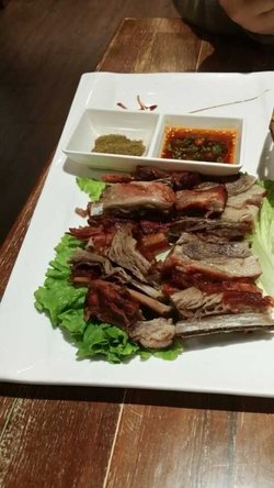 新疆菜餐厅,人气还挺旺的,还没走进店,就闻到羊肉串的香味。点了一个飘香羊肉,羊肉没有很重的膻味,羊肉切的比较薄,刚入口满口孜然的香味,嚼上几口,羊肉的香味就吃出来了。它家的烤羊排也很不错,外皮焦香,肉质很酥,还有汁水,蘸上点孜然和咸辣酱吃,超级美味。这家店很不错呢,价格便宜,量又大,值得一吃。查看更多
