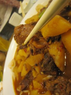 这家的东西非常赞,羊肉类的东西很多,尤其是羊棒骨,味道很好,个头很大,性价比很高。还有大盘鸡,这家是我吃过最好吃的,首先说鸡肉吧,很嫩,而且很入味,鲜嫩多汁,有点像酱油鸡的口感。还有土豆,土豆很酥,味道辣辣的,软软的,很糯,而且一盘很大,性价比挺高查看更多