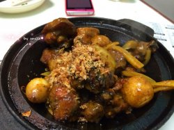 虹口龙之梦里的食铺多的是不胜数,每次都觉得在这里看到最多的人群,都在哪些在餐厅前排队的人了。对于虹口龙之梦里的新开店,通常都是我们一群喜欢吃的小姐妹猎奇的场所,所以当得知这家新开的潮人餐厅,据说提供的菜式又以东南亚菜式为主,比价符合我们大部分的口味,所以,我们来了。店铺里很有些粤式茶餐厅的感觉,桌位之间挨的都挺近,店员穿着统一的印着“潮人餐厅”的衬衫,忙的马不停蹄,老式的铜质吊扇在蓝绿色的餐厅上缓缓的旋转着,和这里快节奏的感觉有些不搭调。觉得这里像茶餐厅的感觉还在于这里的菜价,大部分荤菜都在30到40元之间,那些点心和小菜都是20几元,感觉还有实惠的,虽然菜单里的菜式还不是很多,但这也是茶餐厅的特色啊。泰式酸辣凤爪,22元这道菜,凤爪其实并无惊艳之处,倒是偏酸不太辣的酸辣酱,使得被浸渍过的洋葱,味道出奇的好,洋葱本身就身爽脆的口感,配上已经盖过其原本辛辣味道的酸辣味道,这道前菜,很能刺激我的味蕾。茶餐厅上菜,没有什么规章可言吧,基本都是厨师做好什么,就上什么,所以这道我们认为应该是主食的火车头河粉,39元,很快就在点单后被端上了桌。平心而论,这道火车头的配料还是很丰富的,荤有牛肉粒牛肉丸,素有胡萝卜黄豆芽,但是汤底的鲜味实在还没达到可以让我们对这碗河粉更增兴趣的程度,而且河粉没能完全吸收汤汁和配菜的味道,吃起来有些无味。泰式烤猪颈肉,28元。这道菜似乎只要在东南亚餐厅,总是会习惯性的点一道。猪颈肉切得不厚不薄的,和经常在泰式餐厅里吃到的不一样,猪颈肉下铺着细切的卷心菜,撒着有些红烧味道的酱汁,这酱汁其实还带着一点点的辣味道,柔嫩的猪颈肉有点甜,有点辣,既入味,又甜美。家乡鱼露鸡,39元。其实点这道菜,就是想尝尝看,鱼露和鸡肉的搭配,不过店家给了一碗有些不伦不类的红颜色的酱料,味道大体上也是偏酸辣的,而我也没能吃出滋味鲜美的鱼露的味道,那只鸡,按照同桌人的说法,空口不沾酱的味道,就是普通的三黄鸡.沙利文干炒咖喱鸡锅,48元。同样是一道鸡肉的料理,这道菜稍稍的为潮人餐厅扳回了些局面。酱料的味道并不只有咖喱,感觉有些本帮菜的浓油赤酱的味道,搭配起来的口感有些厚重,但是却让鸡肉变得更加香嫩,但是我剑走偏锋的喜欢上了里面作为配菜的小洋葱。小洋葱个头和一个一元硬币差不多,表皮上蘸满了酱料,咬起来有些清脆,里面除了酱汁的味道,还有点点甜丝丝的口感,丝毫不觉得辛辣。辣椒膏炒花蛤,36元。也许是辣椒膏的味道有些过重了,所以花蛤肉吃起来很咸,而且酱汁调的过于浓厚,口感上也没有什么很突出的地方。蒜香一口牛柳,36元。点这道菜,是因为鸡肉啊,猪肉啊,都点过了,想点一道和牛肉有关的菜,于是在菜单为数不多的牛肉类的菜肴里选择了这道蒜香一口牛柳。不过在点单的时候,店员强调说这道牛肉不能炒的太久,否则会咬不动,所以如果我们看到牛肉粒里有血丝是正常情况。上桌后的蒜香一口牛柳,被切成正方形的小方块,和之前火车头里的牛肉粒大小一样,上面的确还留有点点的红血丝,配料里有切成块的洋葱和炒花生碎。可是估计厨师还是算错了火候,这牛肉粒第一口咬下去,有一股汁水包裹在里面,但是再咬,咬不动了。最后我也无法将它嚼烂咽下,只能浑囵吞了。蔬菜也是要点的,我们点了啫啫虾酱生菜干锅,32元。生菜大概只是简单的清水里焯过一遍,所以吃起来仍旧保持了它们的清脆,还有虾酱的鲜美,这里面同样加入了小洋葱和小珊瑚虾作为配料,珊瑚虾加重了菜肴的鲜咸,而可能是因为酱料的关系,这里面的洋葱没有了之前的美味,单独吃起来,辛辣的味道出来了。主食和点心我们另外还点了黄金“咖椰”西多士,22元。看到“咖椰”两个字没有,其实西多士上面涂的那一层,就是咖椰酱,既然有椰字,自然就有椰浆了,不清楚西多士上除了咖椰之外,还有没有加入其他的和糖有关的作料之后才油炸的,总之这个黄金西多士,有点甜。餐厅新开店的活动是饮料买一送一,所以我们分别点了柠檬红茶、薄荷金桔有气特饮料和港式黑白奶茶。价格都在14-16元之间。其中薄荷金桔有气特饮料的味道最为清爽,颜色看起来也很漂亮。整个就餐过程,我们停留的时间比较长,不断的看见客人在略微狭窄的过道中进进出出、服务生则匆忙的来来去去,再加上店内的布置和装饰,总觉得好像是在一家港式的茶餐厅里。…查看更多