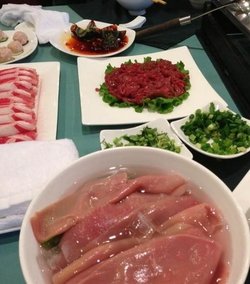 都是冲着他们家的牌子才来的,身边好多人都团购了,我也跟风团了一个,钱到不多,肉不少,四盆羊牛各2盆,大铜锅果然有感觉,加起来看到肉还是挺厚的,肥牛味道不错,比较保真,不至于是假的套餐里还有蔬菜和蘑菇拼盘,也是一大盆,东西倒是挺多,酸梅汤是2大瓶,倒是很实在,就是不够酸啊倒是配合火锅吃比较不错甜甜的凉凉的,在这吃火锅热的要死还是挺舒服的,去的时候人还蛮多的,都是外地来玩的人多吧!查看更多