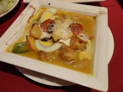 多悠悠@澳门葡国餐厅 MACAU PORTUGUESE:静安区西康路466号(近康定路)tuan800积分兑换到的大众点评团价值88元的双人套餐,性价比颇高呢!既然是free charge,对店家的要求也就不会特别高!看到很多人晒团,感觉还不错,当然也不乏差的。凭良心说,团购价还是蛮划算的,想起当年第一次吃葡国鸡,还是在新旺,他家的葡国椰汁焗鸡球饭至今都难以忘怀,好吃!不过也真心的贵。好了,话不多说,上菜!吞拿鱼色拉份量真心大,淋的不是传统的色拉酱,而是油醋,感觉不会有很重的负担,喜欢的;罗宋汤酸甜的口感,蛮开胃的;葡式薯茸青菜汤肿么感觉在KFC喝的蔬菜汤,O(∩_∩)O哈哈~;招牌葡国鸡矮油,重头戏,焗的很给力!鸡肉相当入味,浓郁的cheese用来拌饭,嗲;白汁蘑菇鱼第一次吃到用奶油做的鱼,鱼肉很嫩,蛮有特色的,关键这白汁是我的菜,(*^__^*) 嘻嘻……;葡式焗鸭饭茄汁的,味道还不错,完全木有鸭肉的骚味;奶油培根特浓芝士意粉芝士味很浓郁,跟小K两个人三下五除二就干掉,谁让我们都稀饭呢;鲜奶油饼沫吃口感觉像是冰淇凌,不错的说;巧克力慕司蛋糕我想唯一败笔的就是这道甜品了,真的不肿么好吃;店铺不小,布置得也挺有风情的。两个人吃,量绝对够了。菜品看得出来还是很有诚意的,没有任何缩水。88两人,吃到这样的菜,非常满意了。这家店总体价格也不高,有机会还会光顾…查看更多