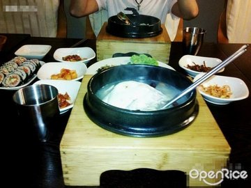 五道口的另一家韩国鸡汤,和望京的张师傅感觉差不多。鸡汤里面的鸡是一整只放进去的,还有很多的中药材,但是吃不出药材的味道,鸡汤上面飘着一层油花,但是不腻人,鸡汤很鲜美,鸡肉都炖化了,味道偏清淡,泡着米饭吃还可以他家的紫菜包饭中规中矩,味道一般…查看更多