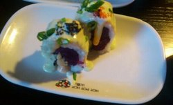 火宴山,吃过很多次了,挺幸运的,基本没有等过什么位,不过他家确实人多,一定要早点来,否则等位真是伤不起。我们两个人,要的都是清汤锅底,清汤的比较清淡,夏天吃不上火。寿司很不错,寿司都是厨师做好的,摆放在餐台上,自己取,样式都差不多,里面的馅料不同,所以口味也略有差别。我拿的这个是蛋黄,口感挺细腻的,上面还有肉松点缀,那个汤汁不错,吃起来,整个寿司都充满了味道。牛肉不错,挺瘦的,切的挺厚实的,涮出来的肉挺有质感,吃起来很嫩,不过要多涮一会。羊肉稍微肥一些,不过也不错,肥瘦的,吃起来更有肉香味啊。查看更多