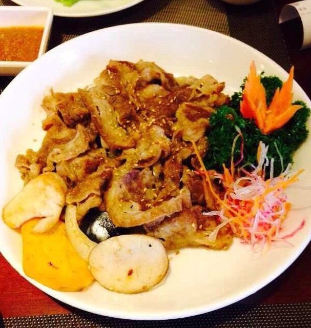 总觉得韩式料理很管饱,非常饿的时候会去吃,他家的烤五花肉拌饭不错吃的,五花肉量很足,比较实惠,调味猪梅肉很赞,汁水很足,烤起来肉香四溢,好好吃!喜欢南瓜粥,每次2碗么商量,特级牛舌很嫩的,牛五花和牛小排也经常点,性价比还不错啦!泡菜饼是我最爱的主食,百吃不厌,咸淡适中,泡菜提鲜,服务蛮好的,随叫随到!下次吃吃看芝士年糕火锅,看起来很诱人哦!