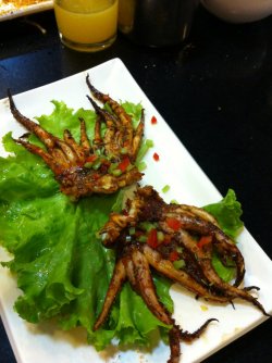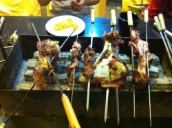 还好 高小包子等級42012-12-181 瀏覽 關注 【羊腿】38/斤。可以自己烤,也可以直接让店里拆了烤了上来。我们比较喜欢自己烤的乐趣!【炭火】10RMB。火一直都挺旺的,羊腿没有小的,基本都3斤以上。我们点的这只3.1斤,但是结账的时候显示3.2斤,还非说是3斤2两。在我们的坚持给退了。所以一定要好好看单。我准备以后再去的话他跟我们说多沉之后立马记下来,免得好像给我们退了还我们占便宜了的样子。。。羊腿事先腌过,所以不用蘸料的话也比较有滋味。羊肉挺香的,表面熟了赶紧片下来吃,接着烤里面的。我喜欢吃火大的比较焦比较脆的,虽然不太健康,但是觉得更有味道蘸料都是干料,有加辣和不加辣的很多种可以选择自己烤的差不多剩下的肉不太好切的时候,可以让店里给把羊腿拆了,穿成串烤着吃【烤板筋】和【烤牛心管】都是2RMB/串。串儿都不大,板筋没吃觉得会比较塞牙,心管的味儿不错,不过不是只加盐什么烤出来的,是刷了酱的。心管还比较嫩,不会太费牙。牙不好的人吃这种东西就费劲啊。。。【烤蚕蛹】3RMB/串。要了两串。很多人都不吃蚕蛹,觉得可怕。其实蚕蛹非常有营养,蛋白质含量又高,味道也挺好的~主要是我觉得挺香的【烤鱿鱼须】5RMB/串。图里显示的是2串。。。这样看来还是挺贵的我觉得。。。也是用蒜蓉辣酱的方式烤的,倒是很有家乡当年烤鱿鱼的感觉,不禁怀疑老板或者厨子是不是东北人,哈哈~鱿鱼上来已经凉了,好在我们有炉子,可以自己加热一下【烤馒头片】2RMB/串。馒头片挺不错的,这个不是刷酱的,就是撒点盐胡椒什么的。还可以蘸着干料吃,外皮酥脆,里面很宣软,不错吃!其实刷腐乳的馒头片我也挺爱吃的【烤玉米】5RMB/个。用的是榨汁的那种玉米,增加玉米粒的香甜度,简单一烤就挺好吃【菜根香】12RMB/份。点的时候我们问服务员是不是就是香菜根他说是,结果上来之后发现是各种菜的根,还有葱根什么的。。。还有萝卜丝,有点甜,不是特别爱吃。。。香菜放的太少的最后吐槽一下,买单187.6,结果人家水单显示抹零-0.4,应收188为毛抹零抹出负数让消费者买单啊。。。当时都没仔细看。。。而且我们只用了2套餐具还收了3套的费用。。。…查看更多+ 3以上食評乃用戶個人意見 , 並不代表OpenRice之觀點。讚好分享还好 炭功夫炭烤羊腿 https://s.openrice.com/KtbT1m0QDe300檢舉 張貼 評分4味道3環境3服務4衛生3抵食推介美食正正正正正正