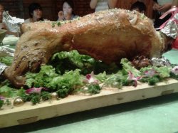 超给力的超大烤羊!20个人没吃完!~ misu婷婷等級42013-08-018 瀏覽 關注 超好吃的烤全羊,木有想到在北京也能吃到这么好的烤全羊哟~地点有点远,坐35路到小海子下车,就能看到竞园啦!这个店在竞园旁边,不是很远的~很大的场地。商家地址:广渠东路3号竞园园区门口附近公交:23路、11路、541路小海子下车,在路北竞园大门东自驾停车:免费服务评价:5颗星口味评价:5颗星环境评价:5颗星哈哈,满分就是5颗星呀!全5分那天的天气有点阴沉沉滴,小雨转多云的天气哟~竞园,是北京一个蛮知名的文化区。这个炭功夫就在竞园的旁边哟!炭功夫的大院~真的很大哦,很宽广~夏天可以在院子里烤,蛮凉快滴!一排排的桌椅,很整齐~大树底下好乘凉~~~他家墙壁上的广告~炭烤全腿,炭烤全羊,炭烤海鲜,各类炒菜。进门处很醒目的大牌子:胡主席说过,自带酒水不是好同志,目测胡主席应该是他家老板!!噗~~~此胡主席非彼胡主席哦!嘎嘎刚刚进门的走廊两边,一边是3个很大的啤酒桶,这些啤酒很荣幸的上了我们滴餐桌,黄啤,黑啤,绿啤一共三种哦!都是店家自酿的。他家面积真的非常非常大,大大的院子,回廊,然后古色古香的气息。环境真的非常好,很大,然后能容纳非常非常多的人,也有小桌子,可以容纳小家庭。适合商务宴请,家庭聚会,情侣约会,朋友聚餐,各种哦,只要你想的到,炭功夫都可以滴!非常干净,整洁,安静的环境,优雅,古色古香的情调~~~~下面说说菜品吧!绿啤有一点点的甜味,非常浓郁,颜色有点像汇源的猕猴桃汁,很正的绿色,口味也很不错!有点像啤酒浆吖,很浓稠的,好喝!烧烤类,分量很大,图片很诱人,价格也不贵,不错不错~~~~农家小炒肉,是腊肉~~嘿嘿,这个菜蛮辣的,但是味道很不错,有些麻香~腊肉也好吃,肥而不腻!干锅肉,辣辣的口味,很新鲜的食材,蛮好吃哦!蒜泥茄子,他家这个是蒸好的茄子,然后放的蒜泥,葱花,松花蛋,还有剁椒。蛮辣滴,不过很好吃,我喜欢他家这个容器,哈哈,很好玩哦!干炸豆腐~~~我还以为是臭豆腐嘞,其实不是~~~嘻嘻~~~外脆里嫩,很好吃~!上面撒了海苔~~风味羊杂汤,很多的配料,非常好吃。料很足,而且一喝汤就不是冲出来的,而是真正熬出来的哦!农家乐蔬菜拼盘~~~切的很好看的黄瓜~~~摆放很好看的造型,我灰常喜欢!芥末松花蛋~~噗~~~居然有芥末,呛死我了~~~唉唉唉~~吃不了芥末的人啊~~~其实味道很正。。清炒苦瓜,败火的菜,很好看的颜色啊,夏天应该多吃,我吃了好多,嘿嘿~~~酸甜萝卜~酸酸甜甜的,还有点微辣,芝麻很香~水煮花生,很好吃,火候刚刚好,味道也不错。养生木耳,这个我很喜欢啊!木耳应该多吃,防辐射抗衰老哦!小番茄,每一颗上面都挂着水珠,好诱人啊!高碑店豆皮,这个要蘸了酱,卷着小葱和黄瓜吃,很怀旧的味道啊。。小时候经常卷大饼,哈哈!果味土豆泥,我喜欢这个菜,貌似之前和家人去吃饭,有小孩子的餐桌都必点一份,哇咔咔~~自己家也可以做哦,很简单!大炖菜~我好喜欢,有豇豆,肉块,然后还有面筋!嘿嘿~~~很大很大的一份啊,酱香浓郁,非常可口~!当当当当~~~~在焦急等待后,猪脚终于来了,虽然不知道是男猪脚还是女猪脚,但是难以抗拒的是见到他时激动滴心情~好大一只羊~~~~~两个人抬的哦!皮都焦香焦香的,花朵和蝴蝶结的装饰~~~艾玛~~~~~激动呀!羊,不是一次就能烤熟哦!是边烤边吃的!吃完最外面一层,然后要回炉再去烤,第二次的因为皮已经剔去很多了,所以肉的感觉和带皮的不一样,第二次的烤回来的羊,羊肉味更加浓郁,也不会腻。很多女孩子喜欢吧,哇咔咔,木有脂肪,减肥吖!好啦!OVER~~…查看更多+ 3以上食評乃用戶個人意見 , 並不代表OpenRice之觀點。讚好分享超给力的超大烤羊!20个人没吃完!~ 炭功夫炭烤羊腿 https://s.openrice.com/KtbT1m0Bdy300檢舉 張貼 評分5味道5環境5服務5衛生5抵食人均消費¥50