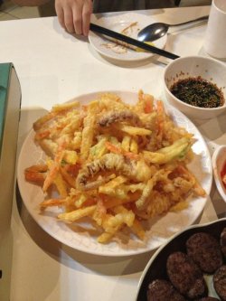 地方还是挺好找的,五道口电影院的侧面,一开始看到店面不大,而且都没位置了,差点失望离去,服务员说对面上二楼还有四楼也是他家,呃,这规模,果断上了4楼,环境一般,点了辣炸酱面30米,量够足,也挺辣的,可是口味偏甜,没有想象中好吃,米肠,30米,我不是很吃的惯,一共就吃了一口,炸什锦40米, 感觉这个特别不值,以为是大虾,其实是鱿鱼须,还只有3个,其他的都是红薯和胡萝卜,米条火锅60米,我只能说韩式的火锅我实在是消受不起,太甜了,一锅基本上没怎么动,就吃了几个里面的午餐肉,应该不会再来了 查看更多
