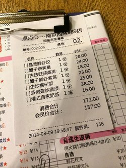 2014年08月09日(周六)难得想吃清淡的港式点心 附近分数比较高的也就这家【晶莹鲜虾饺:28元】一份4个 皮非常的晶莹剔透 相当之薄也很容易夹碎很一般的虾饺不是很一样 皮的口感有点像米皮 透透的虾仁不是大颗的那种 好在汁水还比较多 鲜美【蟹子烧卖皇:24元】捏的非常结实的蟹子皇烧卖 可惜了蒸熟的深红色蟹子和虾饺的区别是这款的馅更加偏肉一些加上烧卖批的厚实感觉 吃起来有种吃肉的滋味【古法豉蒜蒸排骨:18元】最后上的点心 吃的实在是有点撑排骨和南瓜的搭配 南瓜倒是吸收了排骨的肉鲜味排骨本身腌的有点口味重了 加上豉蒜 吃完有点口干【蟹子鲜虾紫菜卷:23元】点的第三个和虾有关的点心 明显这个不太好吃用紫菜包裹的虾仁肉糜 上层放了一些蟹子和蟹肉棒始终不太能接受蟹子蒸熟后的那个口感 没有了鲜美口感紫菜煮熟之后又是软趴趴的状态 整个点心感觉就是湿哒哒【生炒糯米饭:25元】第一个上桌的居然是一碗糯米饭 着实有点不太理解了煲仔的造型但却没有焦焦的锅巴香 饭上撒上了不少葱花一点点的香肠肉 米粒很分明 却没有炒到都呈酱油色【茶树菇炒猪颈肉:38元】似乎每次港式餐厅偶都会点上一份 茶树菇或者猪颈肉他们家的猪颈肉片很大 肥瘦相间 很有弹性 肉质很香茶树菇过油后没有那么的脆 湿湿的吸收了肉的鲜美口感还是有点偏重偏油的 不过很好吃【港式自家奶茶:16元】某胖胖选择的冻奶茶 结果完全是常温的用的杯子有点怪 口味也真心不太港式【芒果布丁】送的芒果布丁倒是口味意外的好吃 奶味很足芒果酱画的笑脸 最后给人感觉还不错●口味:同样做港式点心 三宝粥铺家的点心要好吃不少●环境:几乎没有什么装修 空调有些滴水 有些不开 最后还用的是电扇●服务:新来的服务员搞不清楚什么状况 熟悉业务的服务员又忙不过来●人均:加18元还是加15元可以办会员卡 享受会员价格 不过2人的话 真心没差查看更多