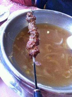 在南礼士路58号,儿童医院西门往南即是环境还成,干净卫生国营的馆子,服务不能要求太多点的精品烤牛肉,一端上桌,就能闻到很香很香的肉味入口回味无穷,肉很嫩,不老不柴,烤的味道很足,夹着烧饼吃更是一赞!肉串个头不小,味道还行查看更多