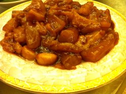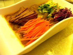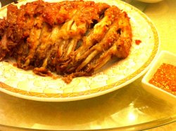 烤肉宛作为京城的老字号创建于清朝康熙年间,距今已经有300多年的历史了。早年间据说老北京人提起烤肉马上想到的就是南宛北季,南宛就是烤肉宛,这里的烤牛肉那是一绝,这次朋友聚会选在这里真的很高兴。 现在北京虽然开了很多新餐厅,但是在烤肉宛仍然有很高的认知度。周日这里赶上了两拨婚庆,再加上散客把大厅和包间坐的满满的。 偶们的包间在2楼,上楼一直往里走就到了。包间环境还可以,墙壁上挂着字画。。不过没太看懂这是什么字。 饮料酸梅汤,听说是店里自己熬制的,酸酸甜甜的冰凉可口。味道还可以。 盐水鸭肝,清真餐厅里很常见的一个凉菜,鸭肝看着很完整,味道应该不错,可惜偶不吃内脏,绕过。 椒油龙豆,龙豆又叫四角豆,翠绿的颜色看着就清爽,吃起来也是脆脆的很爽口,不过没有尝到椒油的味道,一点都不辣。芥末鸭掌。看着鸭掌上满满的芥末就倒吸了一口气。味道一定很刺激,受不了芥末辣,只好又路过。牛肉拉皮。这个菜偶喜欢。上来时牛肉丝,胡萝卜丝,黄瓜丝和紫甘蓝丝都切好码放整齐在拉皮上,颜色还蛮丰富的。。搅拌均匀后拉皮滑丢还不错。麻酱很多味道还不错。 烤牛肉。这个上菜的小炉灶很喜欢。景泰蓝感觉的炉子,上面还有烤肉宛的名号,上面是一个小号的篦子。 离近看看烤牛肉。。南宛北季,南宛最出名的就是烤牛肉,而北季则是以烤羊肉出名。牛肉蛮嫩的味道果然不错。如果不是因为大家还拍了半天照,一上桌时趁热吃一定更好吃。。牛肉很嫩,里面还加入了香菜和洋葱,洋葱不怎么喜欢,香菜倒是很提鲜,里面孜然的味也蛮浓的。给烤肉调味的辣椒油和黄瓜条,糖蒜。。其实不用调味烤肉就已经很够味了。。吃糖蒜和黄瓜条比较解腻还不错。烤羊肉,一样精致的小烤炉。羊肉的味道感觉也不错。就是温度不够热。。感觉不如以前现烤大篦子上边烤边吃的那种好吃。 芝麻烧饼。。这个是单点的。。看着很诱人,一直感觉烧饼应该是空心的,方便夹肉吃。。没想到是实心的,还很咗实。这一个烧饼吃下去就顶着了。。烧饼沾满芝麻的皮还蛮好吃的,但是烧饼里面感觉一般。不比不知道,还是聚宝源的烧饼好吃,又想念那个烧饼了。芫爆肚丝,据说是这里的招牌菜,看着感觉有些软塌塌不够筋道的感觉。不过内脏菜偶继续路过。葱爆牛心。。看着不错。。不过偶又飞过了。。呜呜。。错过这么多好吃的偶滴美食人生不完整。 芝麻鸭肉。。这个很像小吃。。鸭肉炸的很酥脆。。吃起来很香脆,不过油比较大。。而且裹了很多芝麻。。吃起来没有什么鸭肉味,都是芝麻的味道,像是芝麻条。 鲜桃仁芦笋,桃仁很鲜嫩,味道不苦大家都蛮喜欢的。。一会就剩一盘芦笋了。。哈哈。。偶觉得芦笋脆脆的也不错。蒜子烧蹄筋。。蹄筋烧的很软烂。。软乎乎的还不错,里面的蒜子感觉也煮面了。。不过偶不喜欢吃蒜。烤羊排。这个味道超好。上桌时就贴心的帮偶们切好了。。羊排外焦里嫩。。羊肉很香。。吃时蘸着搭配的辣椒干粉更加好吃,虽说是辣椒粉,可是吃起来并不会很辣。 鲜鸡菌菇汤。。这个蛮喜欢的。鸡汤香浓却不油。。里面各种菌菇味道都不错。 盛在碗里的汤。。里面有鸡肉,竹荪和各种菌菇。。汤真的很好喝。。不过分到个人就比较少了。黑椒鸡毛菜,感觉青菜就是水煮的没有什么味道,也没有什么黑椒味,盘子底好像有不少蚝油,整体感觉很一般。豌豆黄。。这是偶喜欢的为数不多的几样老北京小吃之一。。因为老北京小吃很多都是内脏,要么就是重油重糖很腻口的小吃。。这个却很清新。。虽然里面也加了很多的白糖。。但吃起来却是淡淡的甜。面面的清爽口感特别喜欢。味道不错。老北京小吃糖卷果。主料是山药和大枣。这个看着就有些甜腻了。上面还撒了很多白糖。刚上来趁热吃还不错。。不过偶实在不耐甜,所以对这个感觉很一般。这里的服务还可以。上菜速度蛮快的。服务员手脚也很麻利。就是包间不隔音。外面举行婚礼即便坐在包间里也非常的嘈杂。…查看更多