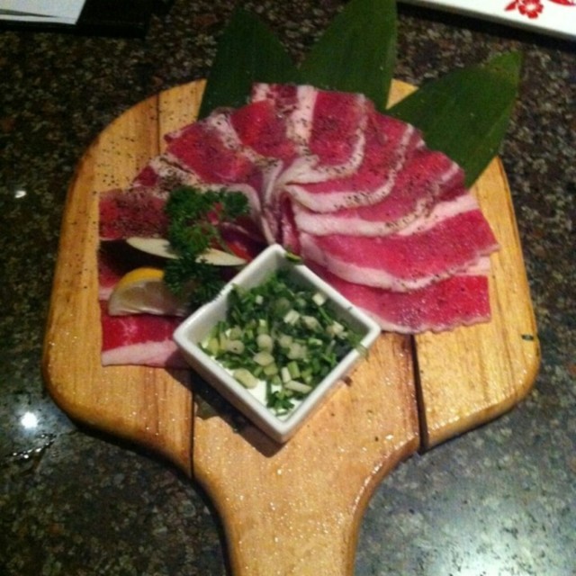 烧肉达人算是家连锁店,这家店离好友单位比较近,所以经常会约上三五好友来这里小聚。这家店开在四川北路上,交通还是非常方便的,店面不算很大,但是还是很容易找到的。比较喜欢它家的玫瑰牛舌,牛舌切的厚薄适中,牛舌色泽鲜艳,稍微在烤盘上两面一烤就能吃了,牛舌很嫩,不沾酱料也非常美味可口。…查看更多