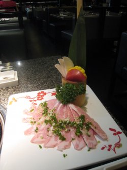 烧肉达人算是烧烤店里环境比较好的了,服务生也是彬彬有礼,还是不是的来倒水。去的时候看到朝日生啤10元,基本上每个人都点的,虽然我平时不大喝啤酒的,谁让便宜呢,我也喝这个了。点了玫瑰牛舌,松阪猪肉和年糕。玫瑰牛舌摆盘很漂亮哦,适合带女朋友来。年糕糯糯的,香香的,要粘着粉吃最好吃了。松阪猪肉也是他家的招牌了,吃口不错。人均吃掉80元左右,还算不贵。查看更多