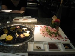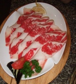 说是日式的烤肉,感觉和韩式的没什么区别,除了生菜要收费了...点了三种点击率比较高的肉:顶级松阪猪:38元。(肉质很紧实,也蛮香的)秘制赤身肉:70元。(味道不错,肉片比较厚,但是也很容易熟的,烤的时间不能长,一长就很老,三种肉中个人最喜欢的)秘制牛五花:33元。(这份牛五花是送的,有点像火锅里面的肥牛,肉片很薄,吃起来很嫩,事先腌制过所以都不需要调料啦)另外,还点了其他的:秘制地瓜:12元。(熟的,吃了一块有点冷,于是放在烤盘上烤了下,结果热了以后很好吃啊,所谓秘制,应该是煮熟的时候加过什么料了,也没吃出来,其实地瓜的原味就很好吃了)烤香菇:12元。(香菇很大个,非常好吃)黄金奶香虾石锅拌饭:25元。 (有点咸,本来味道应该不错的)可尔必思:12元。水蜜桃味和西柚味,反正酸酸甜甜蛮好喝的。烤盘经常要换,可能是炭火温度太高了吧,一会儿就直冒烟,桌子上面小小的油烟机有点跟不上节奏了,一顿饭下来换了10几次了,不过服务态度很好,会主动过来换烤盘。总之,菜的品种真是不多,但是品质不错,量也可以。味道么还和个人动手能力相关,要多加练习才能烤出好肉,哈哈。查看更多