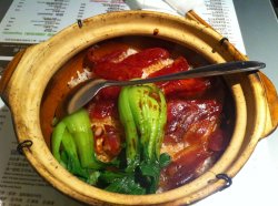 招牌腊味煲仔饭 marvely等級42013-05-123 瀏覽 關注 在某团购网站上团购了他家的抵用券,有天路过的时候,就进去消费了。店面不是很大,却被店家独辟蹊径的铺成了两层,虽然每层的层高不是很高,但是空间的确大了很多。不过店里的服务员态度很是淡薄,回答的语言也是言简意赅的,不过我也不是很介意,只要食物不差就好了。点了他家招牌的腊味煲仔饭28元,加了个3元的窝蛋。大约过了十几分钟,我的煲仔饭被端上来了,饭上铺着一层腊肉和香肠,粗粗看起来,显得有些少,饭上没有浇很多酱汁。蛋我选择的是生蛋,选择的时候,完全没有想到禽流感什么的,不过将生蛋打散融在本来就温度高的饭上,味道竟然很香。虽然嫌弃他家给的腊肉和香肠少了,但是这些腊味的味道的确不错,饭上虽然浇的酱汁少了,但总体来说味道不错。唯一缺憾的是,几根青菜干的不得了,在锅里放的时间越久,越是干的嚼起来如干柴一般,无法下咽。…查看更多+ 2以上食評乃用戶個人意見 , 並不代表OpenRice之觀點。讚好分享招牌腊味煲仔饭 煲格阁 https://s.openrice.com/KtbT100nO8500檢舉 張貼 評分3味道3環境3服務3衛生3抵食