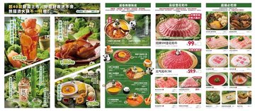 招牌9M雪花和牛 / 創意三味熊貓鍋 / 甄選肥牛 / 雲南七彩土豆 / 元氣和牛 / 熊貓上樹鮮竹筍