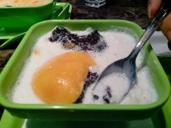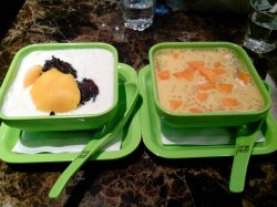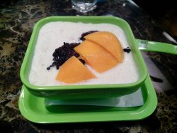 大热天的吃点甜品什么的,最舒服了!店铺的位置很好找,一上3楼的电梯就能看见了。里面面积不是很大,只有一个人在店外照应。四周的隔断是用翠绿的竹子来做分割的,青翠的竹子给人清爽、凉快的感觉, 在配上黑色的桌椅,很协调。盛甜品的餐具也是绿色的,所以还没吃就觉得凉快了很多。点的杨枝甘露和芒果白雪黑糯米,两个的味道都还不错,尤其是芒果白雪黑糯米,芒果块大小还算可以,里面有细碎的小冰屑,伴着一勺椰奶入口,凉丝丝,甜滋滋。黑糯米略硬,在糯些就更好了!查看更多