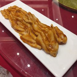 一般去这家都是点烤鸭的,但是也会另外点几个喜欢吃的小菜,味道也都还行。比较喜欢这家的松仁鸡米,还有菜心鱼面筋,虽然知名度没有烤鸭那么好,不过也颇受欢迎。松仁鸡米,鸡肉的肉质还是蛮入味的,松仁有一种比较特殊的香味,吃口微辣。菜心鱼面筋,对于里面的菜心其实倒也没那么喜欢,但是鱼面筋的口感还真的蛮好的。人均消费在六十元左右,价格还是比较实惠的。