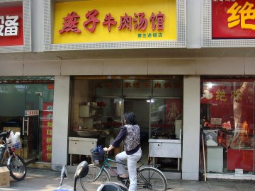 珠江路上的比较好吃的一家锅贴店,店不大,里面座位也没几个,座位但看上去还算干净,但是外面做锅贴什么的地方看起来油汪汪的,不太美观。他家的锅贴味道不错,外皮贴得黄灿灿的,里面也有卤子,口感不错。他家的招牌是各种牛肉汤,汤里除了牛肉,还有一些干丝之类的东西,汤很鲜,因为太鲜了,所以估计是加了不少味精。