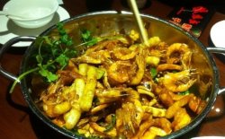 开在世贸商都的5楼~不过个人感觉这里的生意并不是太好~因为楼下都是单独的门面~并不是在商场内的~所以人气不是很足~这家是吃干锅类的菜品的~属于重口味系列~干锅牛蛙、干锅虾都还蛮不错的~朋友聚会点上两个锅再来几个小菜足以了~干锅虾:看看很大一锅~不过虾的量不是很大的说~都是其他的配菜~不过配菜还算丰富的~有年糕、地瓜、黄瓜什么的~比一般的干锅店里的食材品种不一样~虾炸过事先~所以很脆很透~可以直接带壳一起吃下去~这点不错~还能补补钙~点上一扎酸梅汤~既能解辣又能解渴~是吃重口味辣食物的绝配~查看更多