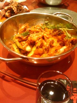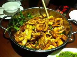 逛完南京路,和爸妈来吃的,以前在电视上有看到过介绍这家店的干锅很好吃,就来尝试了下,点了一个干锅虾,然后还有一个蔬菜,香辣虾干锅很香,我们点了微辣的,味道超级好,但是有一点点油腻了,里面有很多虾,还有年糕,红薯条,鱿鱼之类的,因为放在一起味道就更加的鲜美了,虾肉很嫩,鱿鱼很有弹性,咬上去是qq的,年糕一直是我的最爱,很好吃,红薯条是外脆里糯~!查看更多