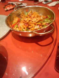 同事去吃过,说好吃,所以特地推荐朋友一起去吃这一家的。朋友一周前就预订好位子了,就怕到时候没有座位。我发现这里靠窗的位子是一定要打好招呼预约的,一般预订的是不给靠窗位子坐的。我们晚上到的早,饭店里已经有好几桌在吃了。这家店满大的,整一层5楼都是他一家的。点了4个菜,才没几分钟的时间就上来了,速度很快。估计是现成的,只要热一下就行了。干锅极品牛蛙大锅,108元,服务员说这个大锅相当于中锅,因为还有一个超大锅的。我们要的微微辣,但我也觉得很辣了。现在越来越吃不了辣的了。牛蛙的味道确实和其他店的不太一样,好像少了一种甜味,味道不算是我吃过的最好吃的,但还可以。咬起来外面的皮不脆,应该是现成再加热的缘故。薯片比牛蛙多的多。薯片很薄很薄,嚼起来也不是脆的,不如里面的藕片好吃。手抓香烤羊排小份,48元。这个倒是味道真不错!外脆里嫩,就是量有点小,里面有几根充数的,比方说一根小羊排上面都是脆骨和油肉,整一块就是不能吃的玩意儿。酸菜芝麻鱼,48元。这个满好吃的。酸菜很好吃。肉质鲜嫩,不油腻。也不辣。小骨头还是满多的,吃起来要当心。腊味荷兰豆,22元,这个比较家常,但相貌挺好。腊肉也好吃。酸梅汁,一扎26元。量少。和外面一扎的量不一样。于是要了2扎。这家餐厅的地板挺滑的,孕妇要当心!查看更多