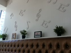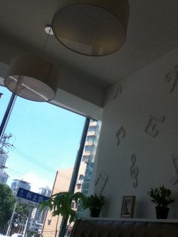 和同学二个人去喝下午茶水晶珠帘,皮质沙发,免费wifi墙壁上有着音符点缀同学和我都不喜欢太甜的东西问店员有什么不太甜的嘛店员说芝士蛋糕 想着推荐的应该还可以结果还是甜...吃几口就腻了不过店员服务态度还是不错的我点了抹茶蛋糕,金属LOGO牌插在蛋糕上很大的一个樱桃,下面的一层是抹茶的红茶就是用川宁的泡的,杯子在茶壶的底下咖啡比较普通,微苦查看更多