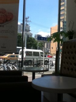 位于转角的位置,本来以为只是卖面包和蛋糕的点,走进去才知道里面靠窗的部分被划分为就餐区,摆放了一些桌子和沙发椅。点了下午茶,是一杯饮料加一块蛋糕,大约二十几块的价格。点了柠檬冰桔茶和新出品的蛋糕,味道都不错。唯一的缺点就是现在的天气靠窗的位置太热了~~~查看更多