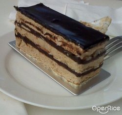 这家日式面包店,少有的宽敞, 高高的层高和四周的玻璃幕墙也让店堂显得分外的明亮,让每个人一踏入店门,就会先有一种心情上的舒畅。还没进门,就看见靠门的玻璃橱窗后,放着两张小桌椅,开始我还以为店里只有这两个小桌椅呢,结果在店中央的柜台点好下午茶之后,看见原来店面的后部分,有一片很大的区域被划来用作就餐区,白色的圆桌和柔软的布艺沙发,加上强大的无限网络,我想如果我家就在附近的话,大概会愿意把很多的休闲时间消耗在这里的。店里最近有下午茶的特惠活动,26元一份蛋糕加一杯饮料。我们点了日式巧克力和芒果西番莲,饮料是爱可培奶茶和柠檬冰桔茶。日式巧克力据说是他家点击率最高的蛋糕, 三层巧克力蛋糕胚子中,夹杂着的应该是生熟两种巧克力吧,吃在嘴里,淡淡的甜加上淡淡的苦,是我喜欢的味道。芒果西番莲蛋糕的造型很可爱,第一层的蛋糕当然是芒果,第二层的味道同样酸酸的,但是我没吃出到底是什么口味,第一层和第二层的中间,悄悄的夹着一个小小的夹层,味道也是有些淡淡的巧克力味道的蛋糕。西番莲是放在蛋糕上层的白色的巧克力碗里的,喜欢西番莲这种有些酸但却不是过分酸的味道,但是我觉得白巧克力的碗有些厚了,所以过分的甜了。爱可培奶茶的颜色是奶白色,味道也不是那种特别浓郁的味道,而是带着点淡淡的奶茶的味道和香气,也许这就是爱可培奶茶特色吧。相比之下,我就比较喜欢喝清凉酸甜的柠檬冰桔茶了。总之,我觉得爱可培是个很适合下午茶的面包店。查看更多