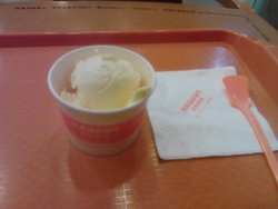 天冷了,也要吃冰淇淋哦,特别是低脂的,哈哈。 在冰淇淋柜前,犹豫半天,选了他们家No.1推荐的芝士蛋糕口味。店员挖的球量挺足的,说是芝士蛋糕,但是我吃起来觉得像酸奶冰淇淋,貌似没吃出啥芝士的味道,好在味道不错,不会觉得很甜腻。 他们家店员的服务态度蛮不错的,会帮你推荐。带着微笑,让人感觉挺亲切的。