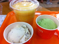他家宣传的是0卡路里的冰激淋。有同事推荐他家,说冰激淋很好吃,而且还不怕女孩子会发胖。那我就去试试啦。冰激淋还挺贵的,好像单球也要30多了,比哈根达斯还贵一点的。选了芒果味道,细细得品,慢慢得咽,觉得一般般哦。吃在嘴里轻飘飘的,好叫没哈根达斯的奶味浓郁。如果说要0卡路里,而牺牲了食物的好味道。那我情愿发胖的。他家好像还有冰激淋蛋糕的。但是也很贵的,不会考虑了。查看更多