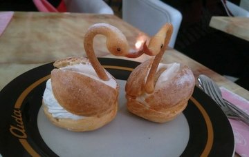 爱达咖啡的美式咖啡还厅不错,主要是比较尊重原味,咖啡的渣子是有一些的,味道自然是特别的浓重的了,我还是喜欢加点奶浆,否则味道的苦涩确实挺重的,喝起来挺甘的。泡芙也不错,里面的忌廉馅料是冰冻过的了,吃着很松脆,外皮小薄脆的口感,挺甜的。