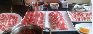 看我们点的菜,满桌都是肉,草原小肥羊、一品肥牛、美国肥牛、雪花肥牛,完全就是为了吃肉而去的,他家既可以吃自助也可以吃点菜,自助的菜品稍微少一些,特别是荤菜类,但基本的都有。肥牛肉都是现切的,切得很薄,入锅几秒就可以烫熟,肥而不腻,吃起来很享受。这家调料是自助的如果吃不惯北方的麻酱可以打一个香油的火锅调料,每人一锅,独立卫生,水果也是自助,但种类和品相都不好。环境和服务也都不错,上菜快,卫生也做得不错。