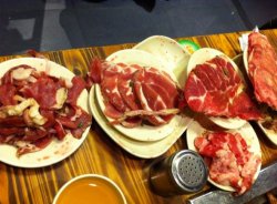 同学聚餐选到他家,基本上去他家就是吃肉。什么五花肉羊肉片牛肉片其实基本混在一起,服务员上菜以后大家看到有肉就上去一抢而空,吃起来不分你我。也有一些小点心蛋糕的配菜。食肉动物去吃吃不错。但是对菜肴的质量口味就不要要求太高了