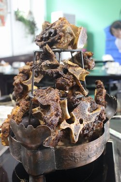 我刚在微信上发图片,我小学同学跟我说他吃了四次这家,真是粉丝还是第一次吃这货,不过我真的很喜欢吃板筋,烤串的时候每次都要而且我吃板筋几乎不会塞牙,讲究方法哈哈一大锅只要108,赤裸裸的板筋和牛肉啊,味道很棒里面还有豆泡,就是有点咸,但是板筋味道刚刚好,而且板筋要抓紧吃,不能煮老了大口吃肉超级过瘾啊!!除了牛板筋,烤牛蝎子也很霸气偶尔吃多了羊蝎子可以换换口味!!而且不是煮的是烤的,牛蝎子的个头都相当大得赶紧吃,特别容易凉还有牛逼大烤串,真NB!!2斤8两!一串饱了!我爱肥瘦相间的吃,香!一串18,还可以接受,挺实惠的!小杯酸梅汤是那个胖嘟嘟的瓶子,好喝!还有橘子味的北冰洋也不赖!板筋真是吃不够啊~~回味~~查看更多