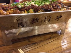 位于簋街的独门冲,在辣口儿餐馆云集的地段脱颖而出受到喜爱,实属不易时下流行的几种辣口儿美食都可以在独门冲寻到,烤鱼、麻辣小龙虾、牛蛙,所以即可以一网打尽,又可以择其所爱还是喜欢吃烤鱼,各个桌面都是红彤彤一片的大盆大碗大盘子,我就点了不太辣的豆豉烤鱼,万花红中一点绿,嗯,味道很好,鱼新鲜、肉鲜嫩,汁浸得完全透彻,除了有点儿油略盐以外都很适合我的口味,其实烤鱼吃的就是这略油略盐的味道,厚重提气,不然就吃清蒸口的了查看更多