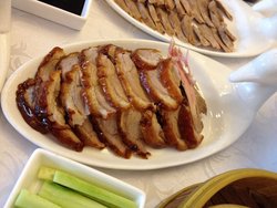 菜品:精品烤鸭是我来这里的动力,赶上有活动办卡送烤鸭,觉得特别实惠,鸭饼很薄很香,鸭肉有三盘,鸭皮一盘,纯鸭肉一盘,肉带皮一盘,鸭皮沾白糖好吃,纯鸭肉有点腥,就着葱丝和黄瓜一起比较好吃,肉带皮的一盘最好了,又能吃到焦焦脆脆的鸭皮,还能吃到实惠的肉肉。蓝莓山药也是最爱,一盘子三小块,上面撒一些蓝莓汁,甜度适中。京酱肉丝口感很甜,甜面酱的味道很浓,豆皮也很干净。环境:环境还可以,大厅宽敞明亮。服务:服务员都挺热情的,态度不错。价位:适中。推荐:☆☆☆☆