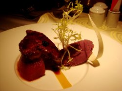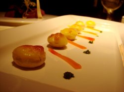 首先最深刻印象的是这里的服务,态度之好让美食也添美味然后是环境,都算ok啦,看得出来是很精心布置的,只可惜店面本来的形状很难布置得好,有一半空间没有窗户,虽然可以用灯光和空调调节温度和光线,但视野会显得比较拘束。餐点就绝对要看运气了,有些菜不错有些菜一般般,我比较幸运哦,点的都是喜欢的,可怜朋友为了迁就我,又希望能多试几个菜,选了另一些口味,就相对比较次了推荐香颂玫瑰露 法式香煎鹅肝沙拉 酸梅冰沙查看更多