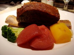 介绍左甘耐,,终于轮到主餐喇..先黎既就系小福既鳕鱼扒+羊小排..鳕鱼扒MS有骨吖,,至少我食到果份有骨..而且可能系因为我无加到柠檬汁既关系,,有少少腥..羊小排好正,,嫩就一个字,,,肥猫都系要左海陆大餐,,不过距果份就系鳕鱼扒+牛排..牛排睇上去虽然仲系好红好血腥,,不过真系好嫩滑,,我谂距份牛排可能7成熟吧?跟住就系吓亲人既红酒烩牛膝喇..点解甘讲呢??因为之前掀盖既时候,,小福同肥猫果两份都比较精致,,但一到Daisy呢一份就,,大家幻想一下富临既脆皮猪手有几大只,,就可以想象到呢份餐有几大份,,多得今晚去左富临,,令我写帖有参照物..味道方面,,比牛排要嫩,,而且都几甘香..最后介绍既就系我同Kenxin都点左既台塑牛排了,,我点呢个既理由超级简单,,完全系想睇下一家店既招牌究竟有几好,,呢份排究竟有几珍贵..但结果有少少失望,,可能系因为本身制作要求,,D肉有D老,,味道有D似牛腩,,而且呢个感觉得到一致认同..个人认为,,纵观甘多份排,,最正系羊小排,,然后到牛膝,,跟住到牛排,,再到台塑,,最后鳕鱼扒..查看更多