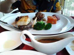 台塑牛排超大 susiely等級22012-08-212 瀏覽 關注 终于去了慕名已久的王品台塑,在淘宝上买了券去的,比较划算牛排当然是点招牌的台塑牛排,端上来就被震撼到了,好大一块,经过努力最后还是剩了五分之二的样子,全熟的牛排一点也不老,不过味道真的好像红烧牛肉啊焦糖抹茶冰淇淋很不错,连外面一圈焦糖网都被我消灭掉了鹅肝也很嫩,入口即化,不过吃多了会觉得腻,喝了酥皮海鲜汤可以缓解一点…查看更多以上食評乃用戶個人意見 , 並不代表OpenRice之觀點。讚好分享台塑牛排超大 王品台塑牛排 https://s.openrice.com/KtbT100ImW300檢舉 張貼 評分5味道5環境5服務5衛生2抵食