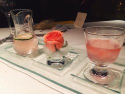 高大上的一家西餐店,服务很到位。提前预约说明是纪念日之类的,店家会准备玫瑰花,感觉很贴心。看到旁边桌过生日的还赠送了生日蛋糕。台塑牛排要的7分熟,牛肉很好切,吃起来很嫩,里面微微带着血丝,有淡淡的黑胡椒的口味,推荐。鹅肝酱:入口细腻,完全没有一点的腥味,配上面包一起,松脆可口。价格每人338加15%的服务费,虽然价格不低但是绝对值。…查看更多