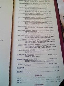 桌摆也很精致,还铺了花瓣,很漂亮吧~~~打开菜单,真是霸气,台塑王品牛排套餐318,外加10%的服务费。先不说味道,这价位令人咋舌,我这工薪族实在是消费不起呢。还有各种酒水,好贵的说。。。拍下来给大家参考一下~~~