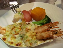 过生日去过几次,有段时间还蛮红的。台湾大名鼎鼎的牛排馆 吃多了,还是可以吃吃滴。 套餐选择,台塑牛排,7分的。牛排还蛮嫩,端上来就发现,重量级勒。真心吃不完。 套餐里面还有个烤蘑菇还有个汤。 个人还是蛮稀饭海陆那款的,芝士大虾狠美味。芝士满满,好吃。 饮料选了玫瑰露,大爱他家的玫瑰露呐。做的也好好看,烟雾缭绕。嘿嘿 我喜欢的 口感也不错,狠清爽的。淡淡的玫瑰花香,感脚喝完要变香妃了。 生日还有帮布置环境的,有送蛋糕。台湾人的服务没话说。