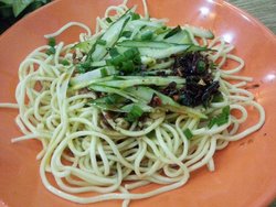 王妈手撕烤兔是不大起眼的一家小店,很小,环境也一般,但这里的手撕烤兔味道很赞。整只的兔子烤的焦香四溢,手撕成小块后加入店里的调料,花花拌匀,慢慢的一大盘,吃着香辣适口,兔肉很有嚼劲,吃着很香。凉面很爽口,吃着软糯,辣椒油的味道很正。查看更多