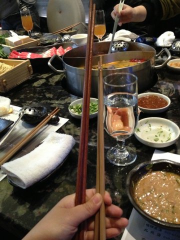 朋友办了眉州东坡的储值卡,王家渡和眉州是一个集团的,所以可以通用,包括会员卡也是。锅底有四川火锅传统的麻辣,也有比较流行番茄锅底,非常喜欢后者,番茄味清香但是微微酸,光喝锅底的汤汁就很鲜美。肥牛、毛肚、黄喉等涮菜的质量都很好,价格中等,小料是自助的,包含了水果小菜粥品,感觉非常值。服务和环境不错。