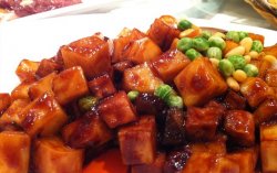乍浦路上的王朝饭店装修蛮有档次的,尤其是餐具金光闪闪的,看了就有一种想吃饭的感觉。推荐的是他家的八宝辣酱,里面的年糕很有嚼劲,豆腐干有些类似苏州豆腐干的口感,只有一点点辣相信不吃辣的也能接受。当然,那个牛肉也是他家的招牌菜,价格自然不菲,味道确实好,酱料有股巴贝拉的味道,肉质嫩而有层次感,很过瘾。查看更多
