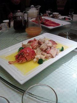 家里老人生日,周六中午在王朝定了包房,十四个人搓了一顿。 冷菜有,鹅肝酱、凯撒色拉、熏鱼、烟鳗烤豆、罗汉鲍、拌海蜇头、风味鳗鱼卷等。海蜇头很脆爽,那个汁水酸酸甜甜,蛮开胃的。凯撒色拉,蔬菜选材都挺新鲜的。烟鳗烤豆,蛮有特色的,烟熏的鳗鱼肉很入味,垫在下面的毛豆肉也好吃的。 热菜,龙虾伊面,豉香干焗兰花蟹,松子大黄鱼,清蒸彩虹斑,黄油焗巴沙鱼,蟹粉蹄筋,澳洲烤排,清炒虾仁,腊肉烟鳗蒸腐竹,XO酱爆象拔蚌,王朝至尊牛肋,清炒杭白菜。印象比较深的是他们家的招牌王朝至尊牛肋,牛肉处理得好嫩的说,一点不会觉得干,有汁水的口感哦,而且很入味。黄油焗巴沙鱼,黄油的味道不会盖过巴沙鱼的味道,鱼肉很细嫩。松子大黄鱼,这个一般,偏甜了,而且外面面粉裹着炸过了,感觉吃不到啥鱼肉。腊肉烟鳗蒸腐竹,这个里面腐竹特别好吃,吸收了荤菜的鲜味。 点心是绿茶饼,咸菜肉丝面,和银耳羹。生日么,面总要点一份的,味道无功无过吧。 他们家环境和服务都挺不错的。