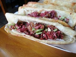 火烧非常的酥脆,尤其是趁热吃的时候非常的香,火烧的形状不是圆形的,是长条形状的,中间切开后塞上剁碎了的驴肉,驴肉很鲜美,没有特殊的味道也没有什么肉味,问这就很香,唯一的缺点就是有点油多了些,其他都很好,还有粥喝。查看更多